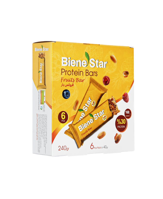 پروتئین بار فروتس بین استار یا همان فروتس بار دارای ترکیبی جالب و جذاب از انواع میوههاست. از موز، کیوی، آلبالو، زردآلو، جو دوسر پرک و پروتئین تشکیل شده است. فروتس بار بین استار یک جایگزین مناسب و بجا برای تنقلات مضر و آسیبزننده مانند چیپس، پفک و… و یک میانوعده مفید و مغذی برای کودکان، ورزشکاران و افرادی است که به دنبال تناسب اندام و سبک زندگی سالم و تجربۀ یک طعم جدید و خاص هستند.